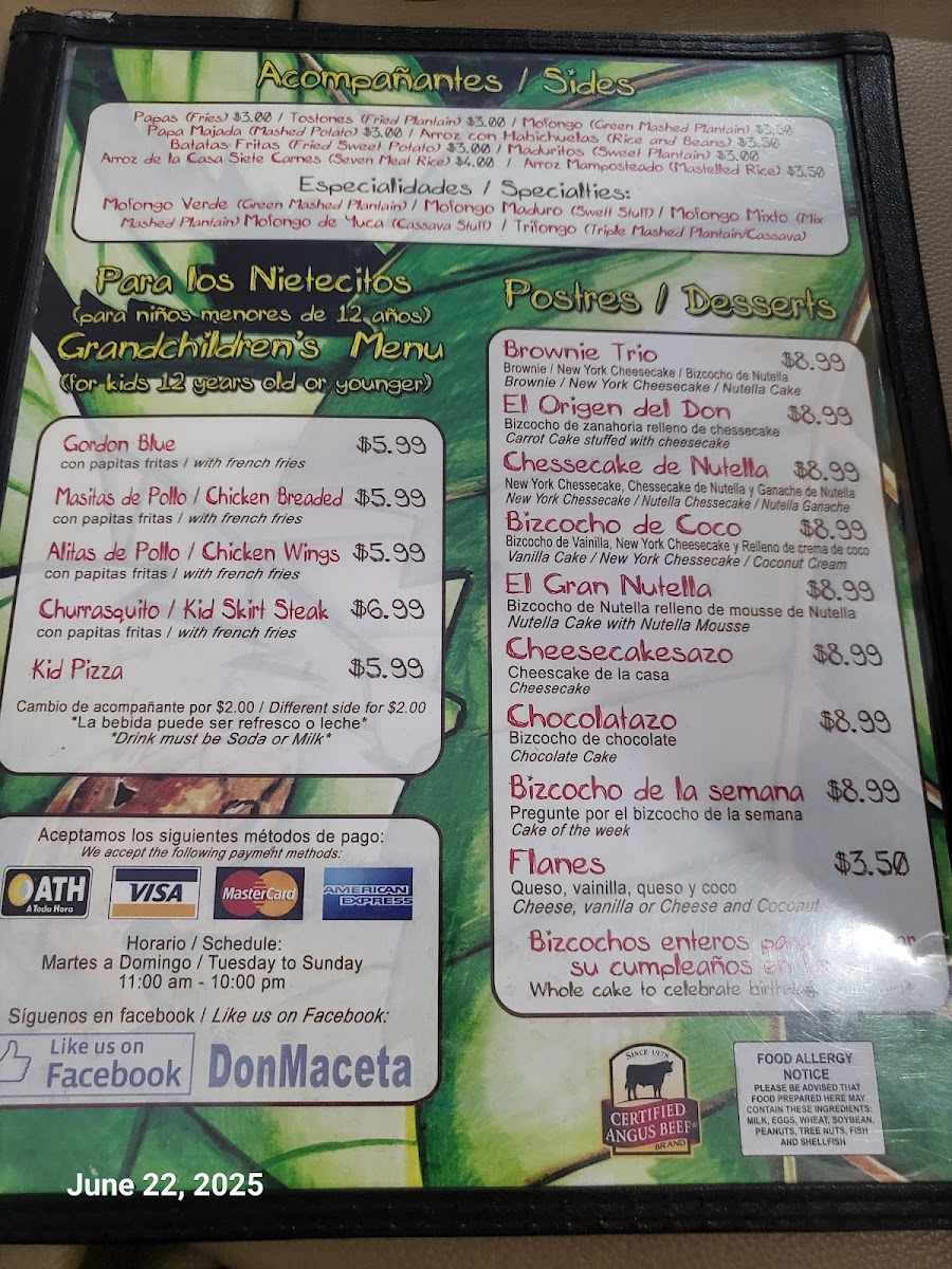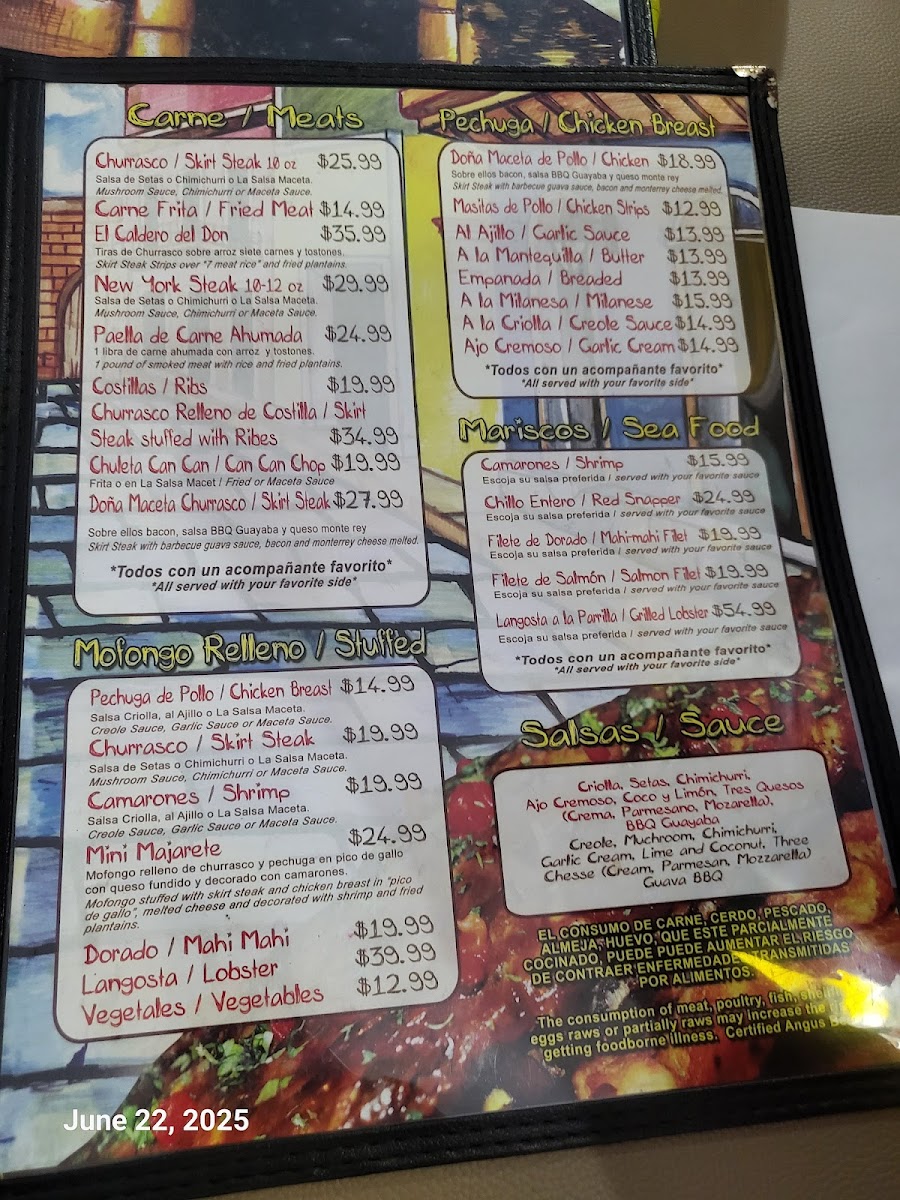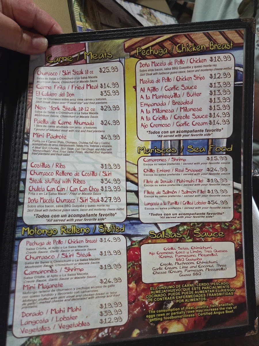 The menu features a mix of sweet and savory options, such as creamy frappés in flavors like Chocolate Brownie or traditional treats like El Majarete. Refreshing choices like Limonada Natural provide balance alongside more hearty dishes like Mofongo Relleno de Camarones Al Ajillo and Mofongo Relleno de Churrasco. Paletas de Helados and mini portions of classic desserts offer light, enjoyable endings to any visit.